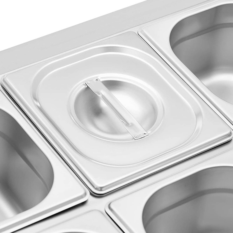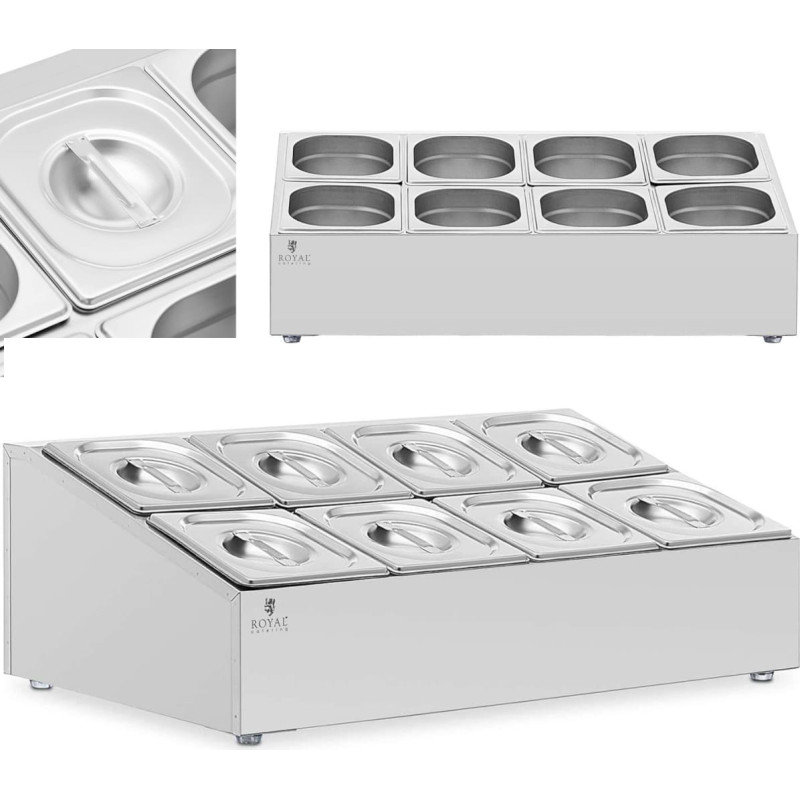 Jūsu iepirkumu grozs ir tukšs! Royal Catering Vitrīnas stends ēdināšanas konteineriem 8 x GN 1/6 + konteineri ar vākiem