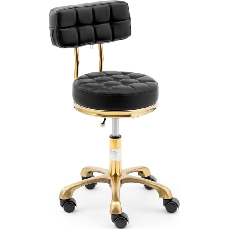 Jūsu iepirkumu grozs ir tukšs! Physa Taburetes krēsls, kosmētikas krēsls ar atzveltni uz riteņiem, līdz 150 kg GELA, melns un zelts