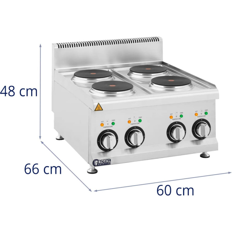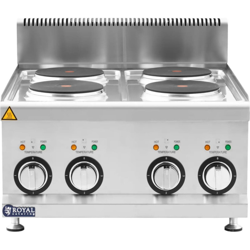 Jūsu iepirkumu grozs ir tukšs! Royal Catering Regulējama elektriskā plīts ar tvaika nosūcēju, 4 gatavošanas zonas, dia. 19 cm 8 kW 400 V