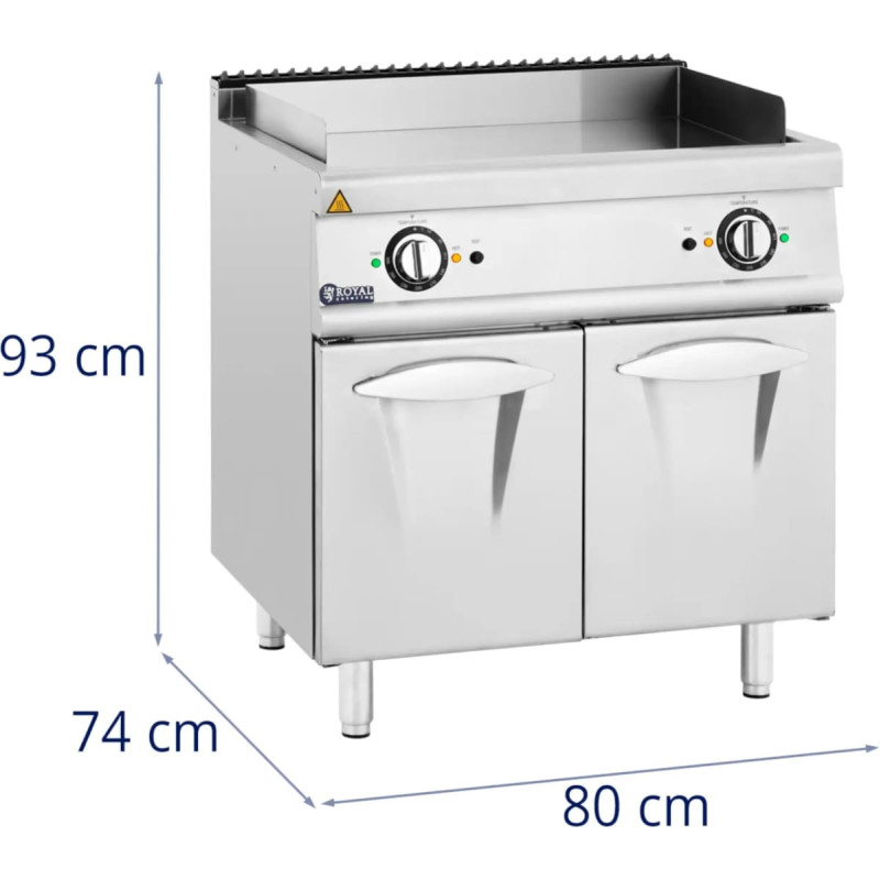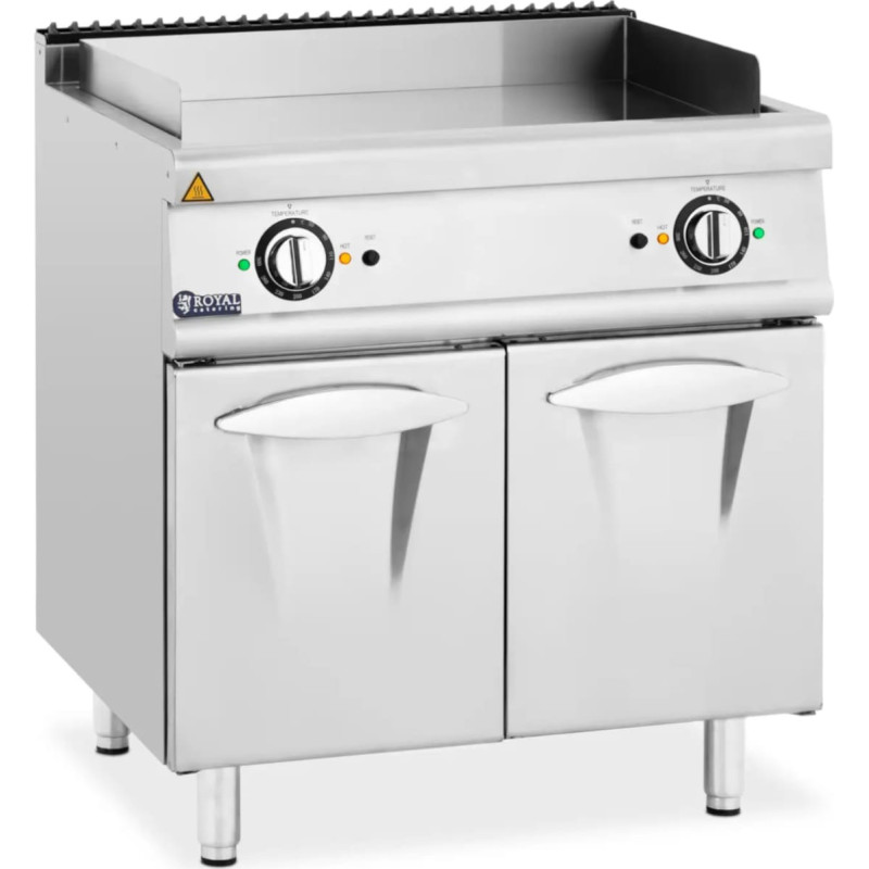 Jūsu iepirkumu grozs ir tukšs! Royal Catering Grila elektriskā grila plāksne, dubultā gluda, ar brīvi stāvošu skapi, 10,8 kW 400 V