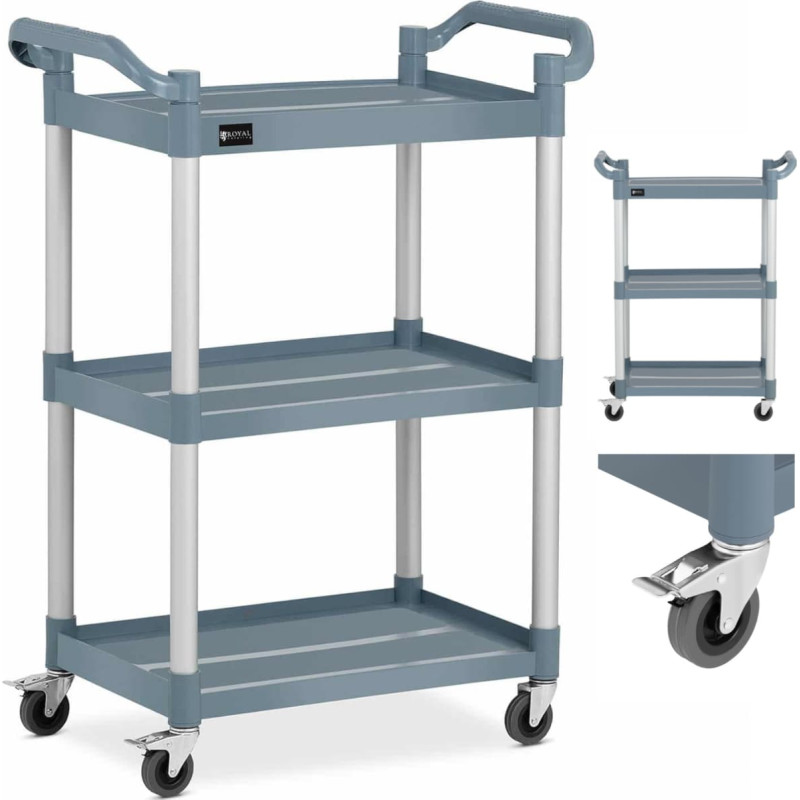 Jūsu iepirkumu grozs ir tukšs! Royal Catering Plastmasas viesmīļa ratiņi 3 plaukti 630 x 400 mm līdz 90 kg