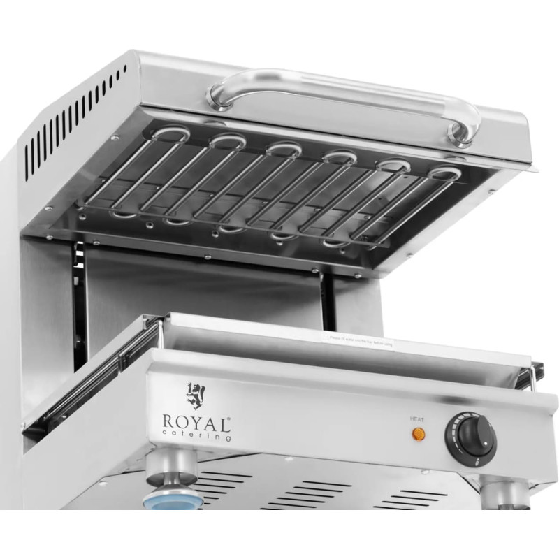 Jūsu iepirkumu grozs ir tukšs! Royal Catering Salamanader pitas tosteris ar regulējamu augstumu 45 cm 230 V 2800 W