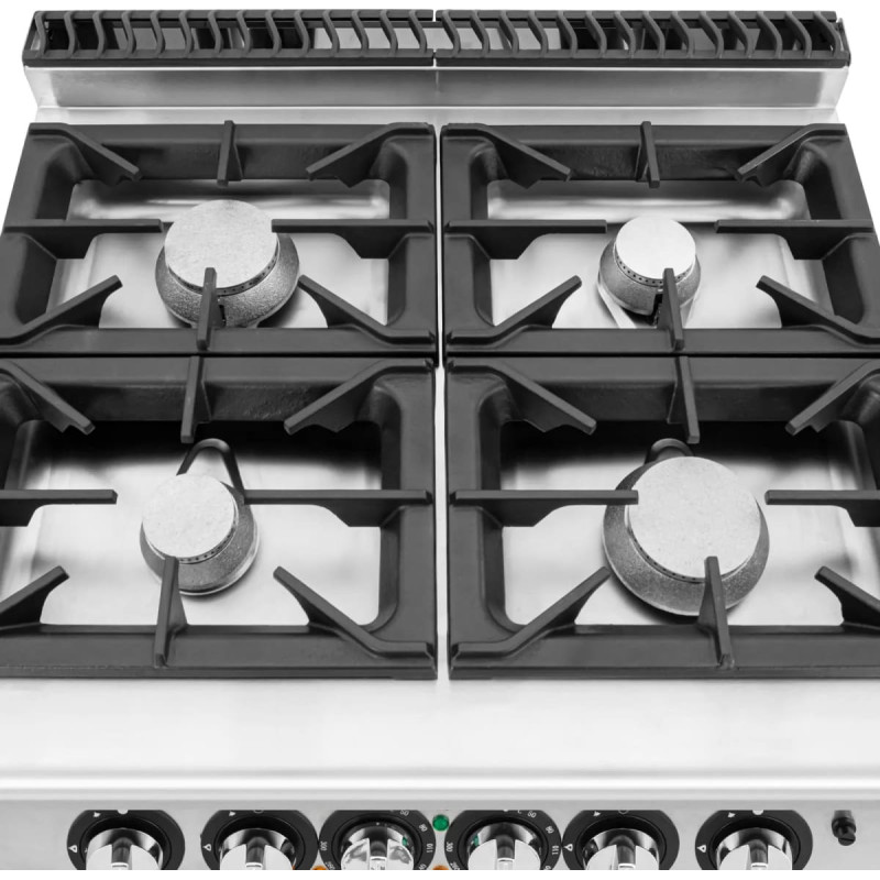 Jūsu iepirkumu grozs ir tukšs! Royal Catering Gāzes plīts ar cepeškrāsni 4 degļi 14,4 kW