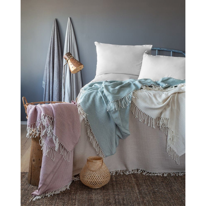 Jūsu iepirkumu grozs ir tukšs! Kokvilnas akrila sega 200x220 pelēka ar žakarda bārkstīm 126jb