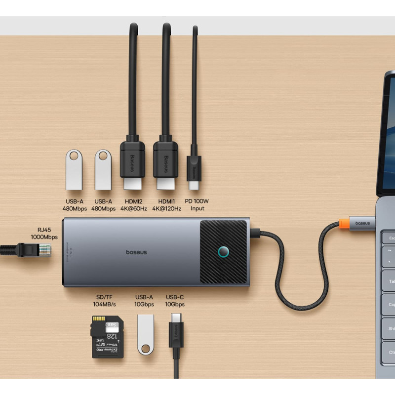 Jūsu iepirkumu grozs ir tukšs! Baseus 10in1 centrmezgla adapteris USB-C uz HDMI / USB-A / USB-C / RJ45 / SD / TF / USB-C PD pelēks