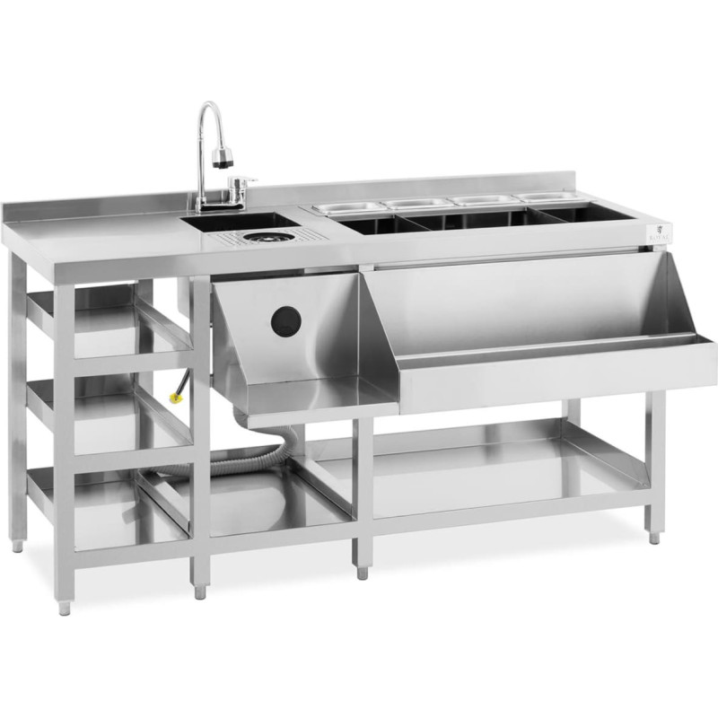 Jūsu iepirkumu grozs ir tukšs! Royal Catering Bārmeņa darba vieta, bārmeņa galds, izlietne ar paplāksni un ledus traukiem, nerūsējošais tērauds