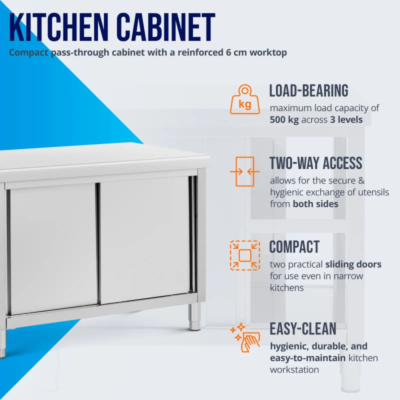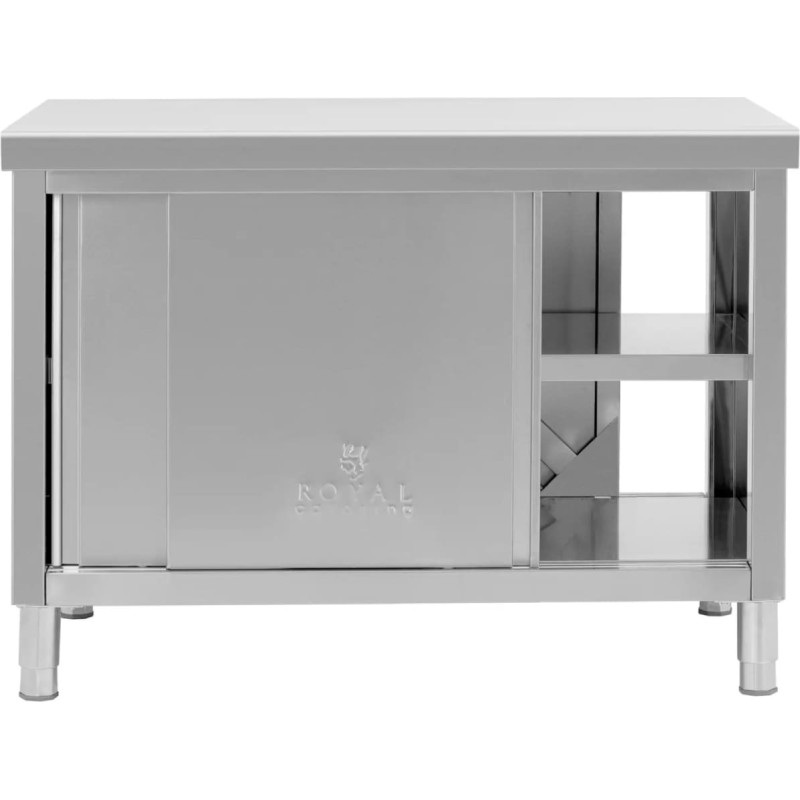 Jūsu iepirkumu grozs ir tukšs! Royal Catering Galds, centrālā darba virsma ar caurejošu skapi, 120 x 70 cm, TĒRAUDA