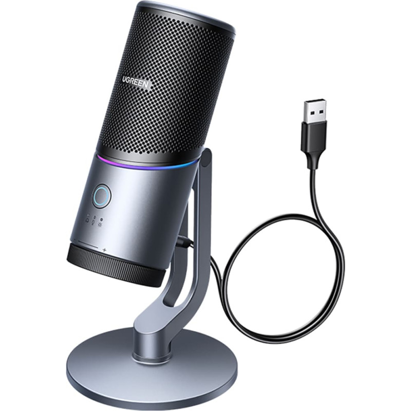 Jūsu iepirkumu grozs ir tukšs! Ugreen USB-A RGB LED galda statīva mikrofons - sudrabs