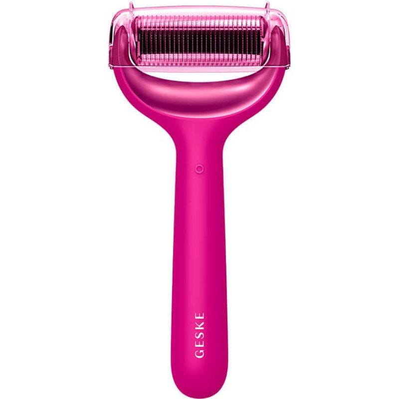Needle mesotherapy roller for face and body 9in1 Geske with Application (magenta).Enjoy professional skin care in the comfort of your home and forget about expensive treatments! Get a refreshed, healthy look with the 9in1 face and body needle mesotherapy roller! Equipped with 3 heads - needle, cooling and quartz - it stands out for its versatility and is suitable for all skin types. The Roller is a SmartAppGuided device that works with the dedicated GESKE German Beauty Tech app. It will help you quickly get the results you dream of - based on the appearance of your skin, it suggests skin care treatments tailored to your needs to improve your skin's appearance for a youthful glow every day! Effectiveness confirmed by ELLE magazine! AI for your beautyGeske's 9-in-1 Roller is a revolution in the beauty world! By working with the dedicated GESKE German Beauty Tech app, you will use its potential to the fullest! All you have to do is scan your skin with the app to get your personal beauty guide. Thousands of sessions with experts are at your disposal, so that every day you can look like you just stepped out of a beauty salon! Professional treatments at your fingertipsAdvanced technologies make the Geske roller reliable in the fight against signs of aging. SmartSonic Pulsation technology sends as many as 14,000 sonic pulses per minute, aiding skin care sessions by removing dirt, sebum and makeup residue. Red Light Active Regeneration reduces fine lines and Fine Lines Refinement precisely smooths. By using the mesotherapy roller regularly, you stimulate your skin cells, leaving it fresh and regenerated, and you can enjoy a radiant glow for longer. Quick injection of youthDo you have a big outing ahead of you? Want to improve the appearance of your skin? Now you only need a few moments to get a fantastic effect! A session of refreshing rolling with a quartz roller? How about a radiance-restoring cool neck roller massage? The possibilities are truly vast! Energizing cooling technology eliminates puffiness and signs of fatigue. Detox Rose Quartz Spa Session, improves microcirculation and provides visibly brighter skin. This quick treatment will have you ready for any occasion in no time! A beauty salon in your homeSleeker, sharper contours, smoother skin and a fresh look? The 9in1 face and body needle mesotherapy roller is your ally on the road to a healthy complexion! Create goals and schedules for your skincare routine in the app, get a youthful glow, smoother, nourished skin and eliminate fine lines and dark circles under your eyes without leaving home! For the best results, finish each session with an enhancing and cooling therapy that tightens pores to promote absorption of your favorite serum! Thoughtful designThe roller was created from skin-friendly silicone and has been dermatologically tested, so you can be sure that the device you hold in your hands is completely safe. Magnetic charging allows you to conveniently and effortlessly replenish the device's energy, and you can easily swap out the 3 heads to perform your favorite treatment. Included