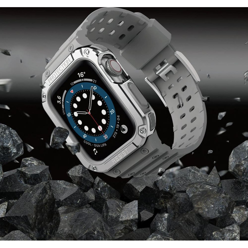 Protect Strap Band Band with Case for Apple Watch 7 | SE (41|40 | 38mm) Case Armored Watch Cover Gray