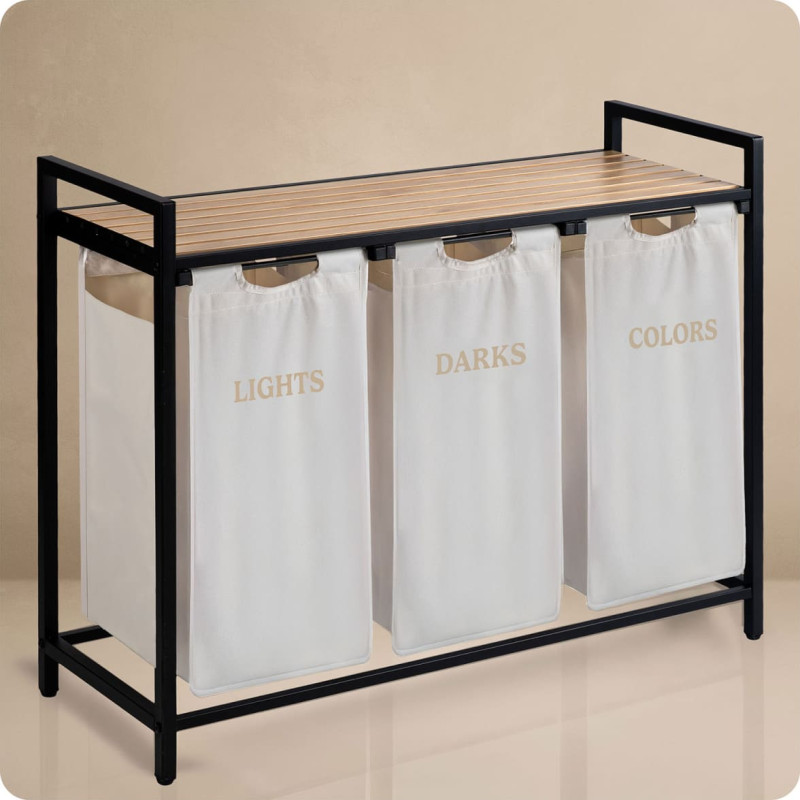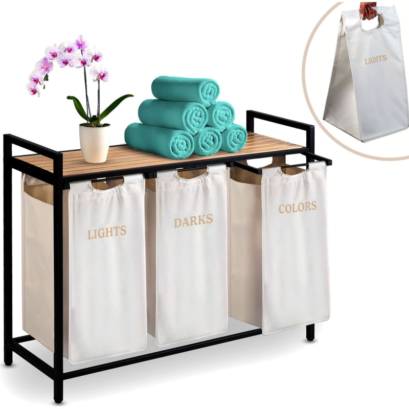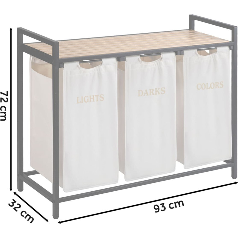 Jūsu iepirkumu grozs ir tukšs! Massido Trīs nodalījumu veļas grozs uz 120 litru rāmja