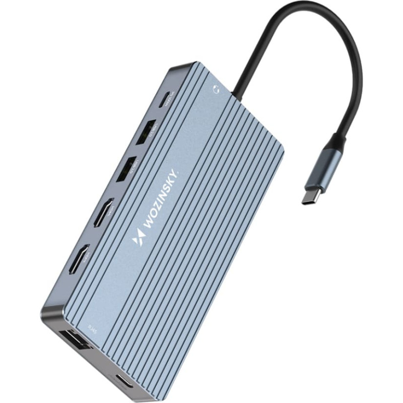 Jūsu iepirkumu grozs ir tukšs! Wozinsky 14in1 centrmezgls 3 monitoriem USB-A USB-C DisplayPort HDMI RJ45 SD TF mini ligzda - pelēks
