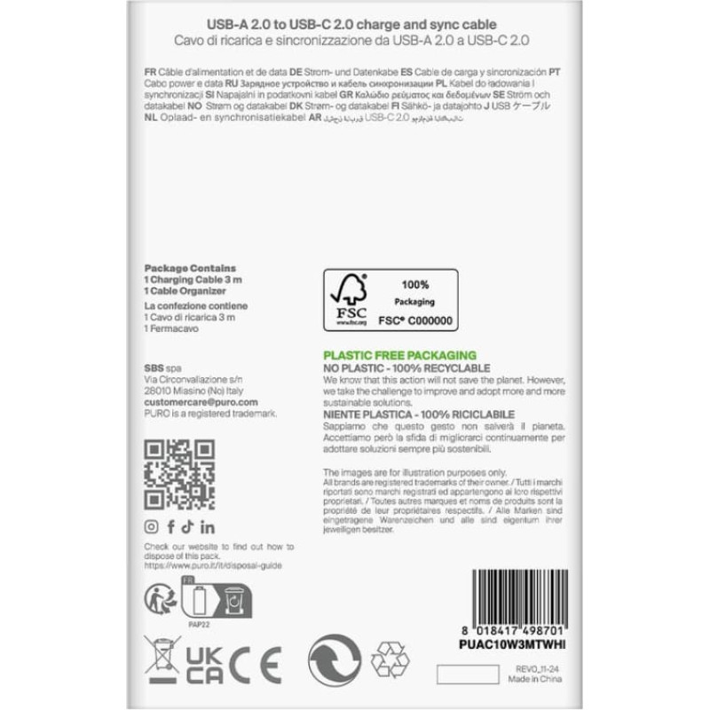 Jūsu iepirkumu grozs ir tukšs! Puro USB-A - USB-C TPE 10W 3m kabelis - balts