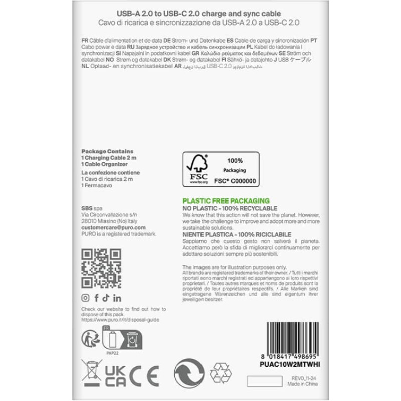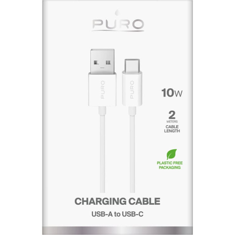 Jūsu iepirkumu grozs ir tukšs! Puro USB-A - USB-C 10W TPE 2m kabelis - balts