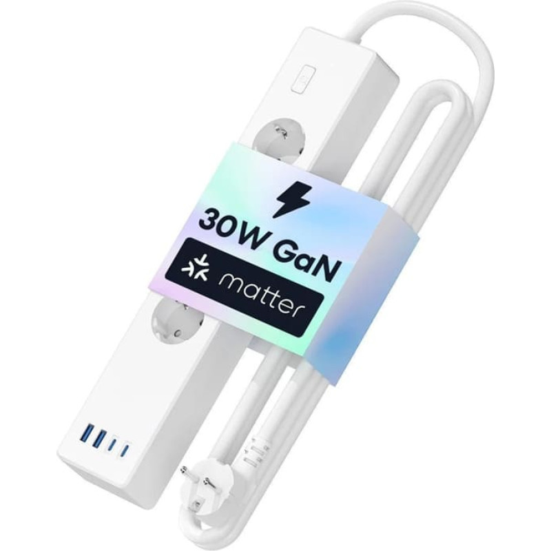 Meross MSP844(EU) smart fast charging power strip, 4 outlets + 2x USB-A + 2x USB-C (Matter)Meross MSP844(EU) is an advanced power strip with four outlets and four USB ports (2× USB-A, 2× USB-C), which combines the functions of charger, extender and intelligent power management. With support for the Matter standard, it integrates seamlessly into popular smart home ecosystems. Independent control of the outlets and USB group, fast charging and extensive security features make it the perfect solution for any modern home.