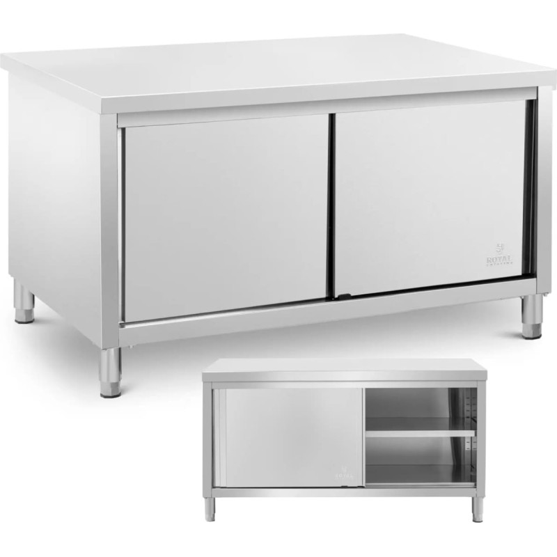 Jūsu iepirkumu grozs ir tukšs! Royal Catering Galds, centrālā darba virsma ar skapi, bīdāmās durvis, TĒRAUDS 160 x 80 cm