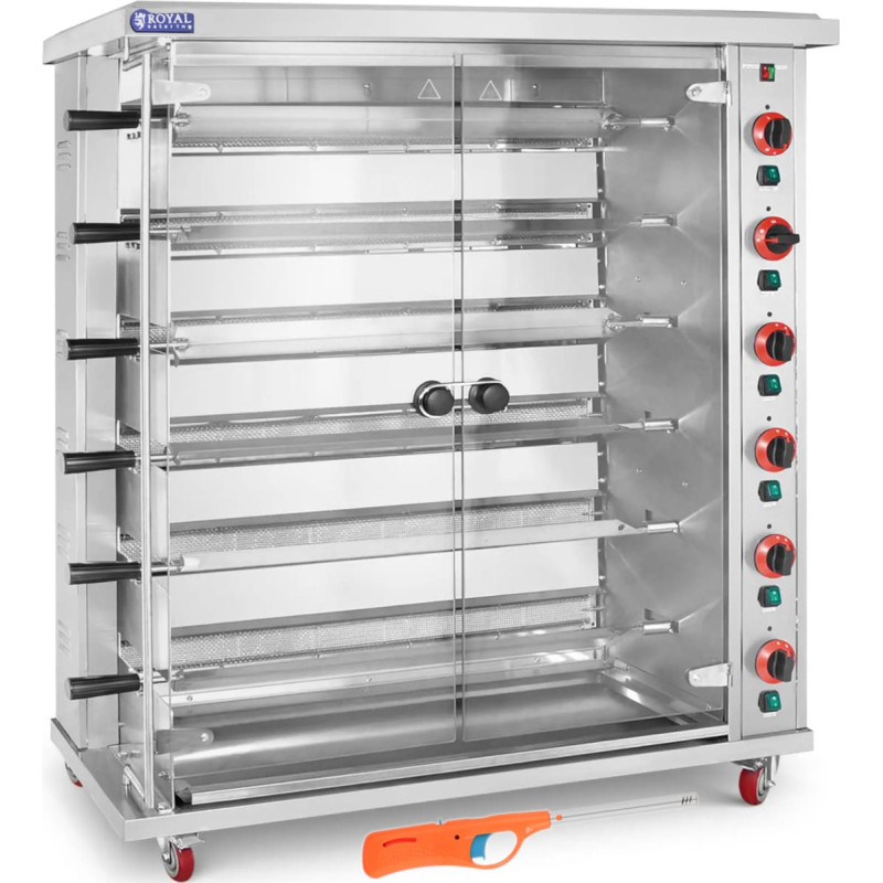 Jūsu iepirkumu grozs ir tukšs! Royal Catering Gāzes grils 30 vistām, 6 iesmi, propāns-butāns, 30 kW