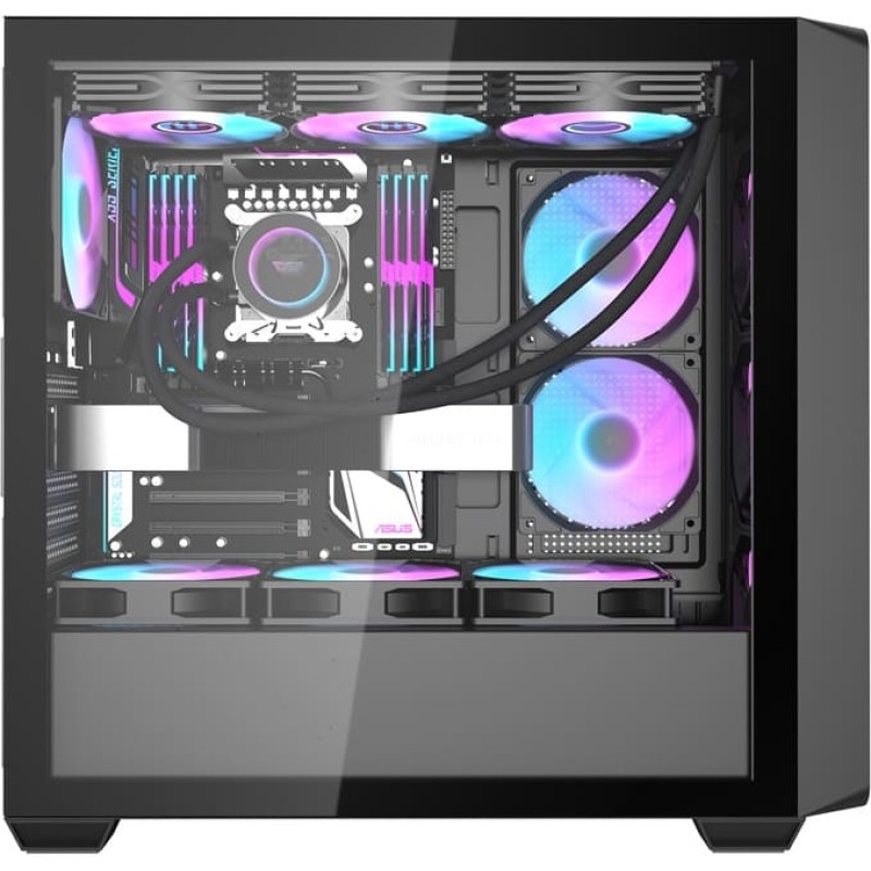 Darkflash DS900WD computer case (black) + 4 fansDarkflash DS900WD is a modern solution for demanding users who value both aesthetics and functionality. The distinctive design with a panoramic design without an A-pillar, equipped with a single transparent glass wall and a wooden front, not only looks impressive, but also provides excellent visibility of components. The case is designed to provide optimal cooling, performance and versatility, while offering ease of modification and expansion of computer systems. The kit includes 4 fans.