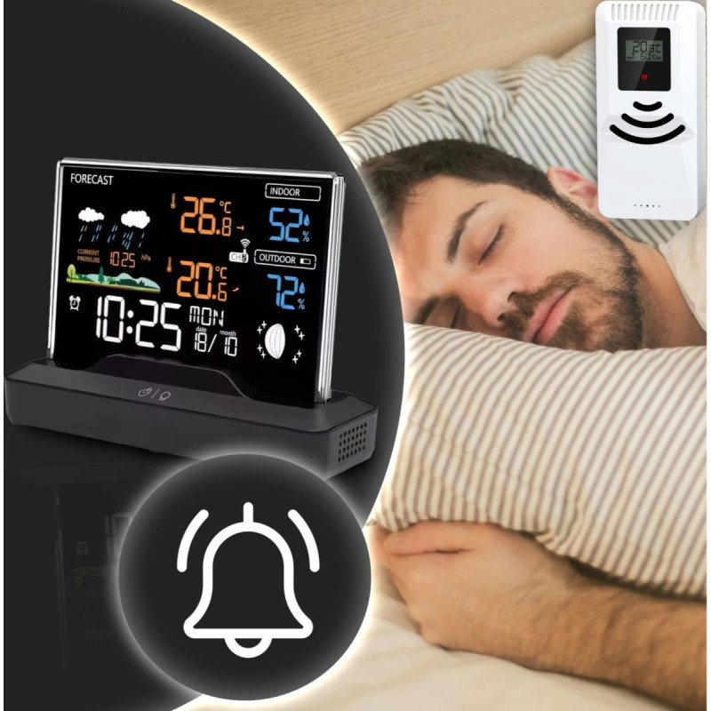 Jūsu iepirkumu grozs ir tukšs! Retoo Bezvadu meteoroloģiskā stacija, pulkstenis, termometrs, higrometrs, barometrs, 1 sensors, 80 m, LCD