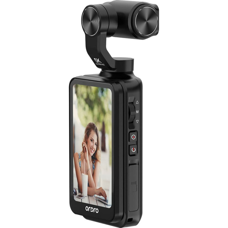 | Ordro Pocket M5 3-Axis Gimbal Camera, 5K, for Vlogging and YouTube â Black The Ordro Pocket M5 is a compact yet fully professional tool designed for content creators who prioritize video quality, image stability, and mobility. This camera is not only an excellent choice for vloggers, travelers, and YouTubersâit's a true filmmaking powerhouse that fits in your pocket. Equipped with an 8MP Sony CMOS sensor, 5K resolution, a rotating lens, IR night vision, and a 3.5" touchscreen, it gives you complete control over the frame in all conditions. With the OD CAM app, you can control the camera remotely, and the 3-axis gimbal with 6 intelligent stabilization modes ensures smooth footage even during dynamic movement. Change the way you create videosâdo it with professionalism and creativity. ~ Specification: