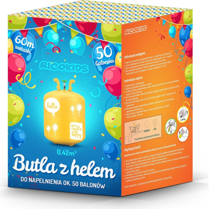 Jūsu iepirkumu grozs ir tukšs! Ricokids Hēlija cilindrs 0,42 m3 ar baloniem un lenti