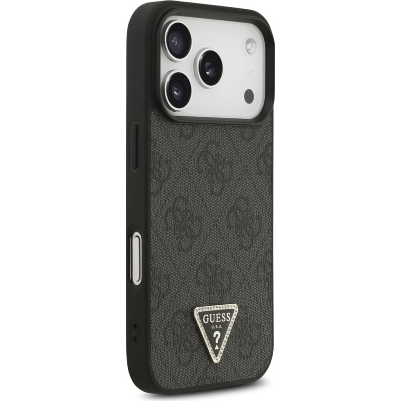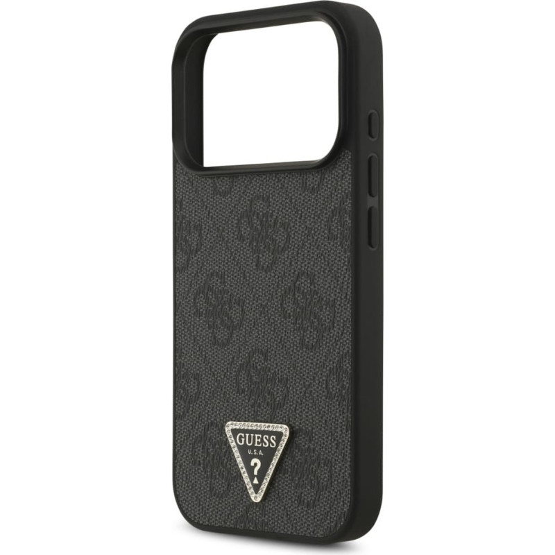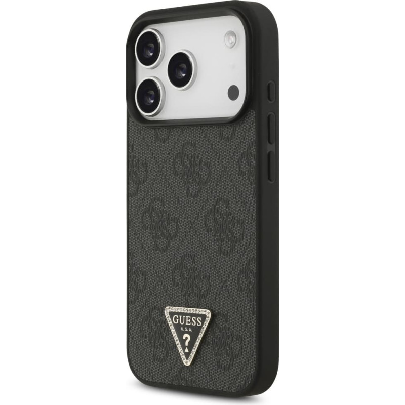 Guess Leather 4G Triangle Strass MagSafe case for iPhone 17 Pro black