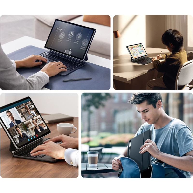 Ergonomic setting with floating designThe aluminum bracket on the Dux Ducis Keyboard (MK Series) tablet case changes the way you use your device. The magnetic tablet mount allows you to easily adjust the viewing angle, which is crucial for maintaining proper body posture. Whether you are working or watching movies, the floating design supports better neck and shoulder alignment, preventing pain and discomfort. Touchpad with gesture support - comfort and precisionThe touchpad with gesture support is an incredibly convenient feature that makes it easier to navigate and control your tablet. With this technology, you can quickly scroll, zoom, and switch between apps using simple gestures. This solution is ideal for both work and play, offering precise control over the device. The integration of the touchpad with the keyboard allows for a more natural and fluid use of the tablet. Full-size keyboard typing comfortDux Ducis Keyboard (MK Series) offers a full-size keyboard that will satisfy even the most demanding users. The keyboard has a comfortable 7-color backlight and a scissor mechanism with a 1.5 mm stroke, which ensures quiet typing. Three levels of brightness adjustment allow you to adjust the lighting to the working conditions, which is extremely practical in various situations. This solution works perfectly during long typing sessions, offering comfort and support. Tablet protection at the highest levelThe Dux Ducis Keyboard (MK Series) tablet case is not only convenient, but also solid protection. The case is made of durable materials such as aluminum, microfiber and PU leather. The power saving function, which automatically puts the tablet into sleep mode after 10 minutes of inactivity, protects the battery and extends the device's operating time. LED display - full control over the deviceThe LED display on the Dux Ducis Keyboard (MK Series) tablet case provides all the necessary information about the status of your device. It displays the status of Bluetooth, the Caps Lock key and the battery charge level. This way, you always know when the device needs charging or what functions are active. It is a simple but extremely useful solution that makes everyday use of the tablet easier. |