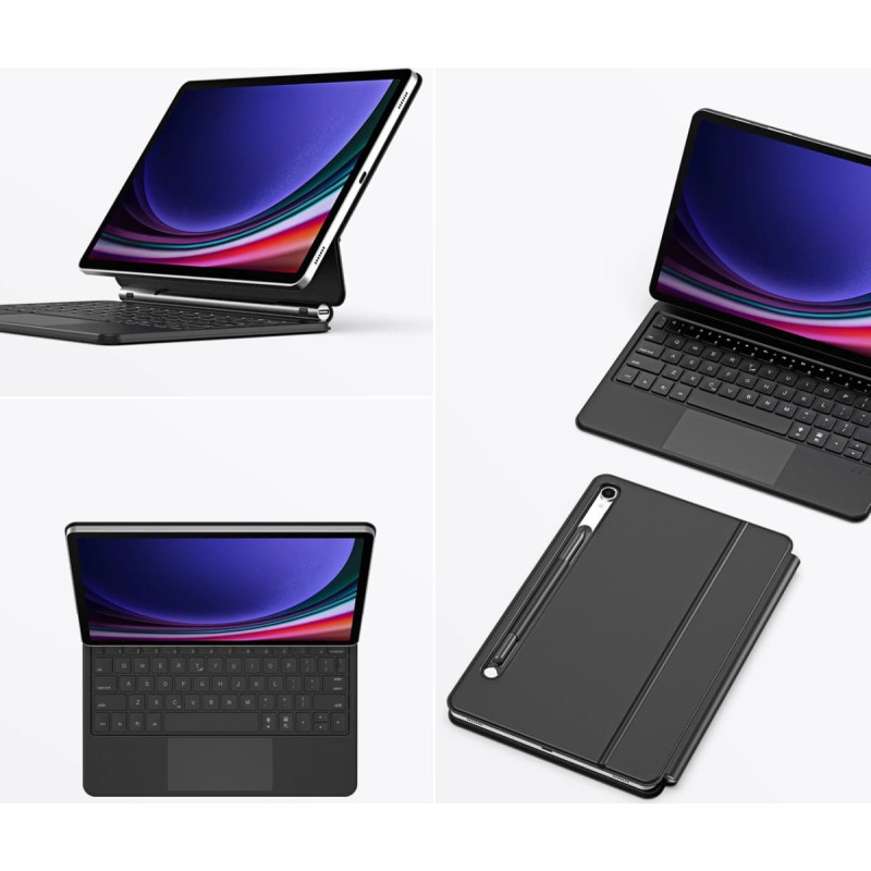 Dux Ducis Keyboard (MK Series) Bluetooth Keyboard Case for Samsung Galaxy Tab S9 / S8 / S7 - Black Discover new possibilities of your tablet with Dux Ducis Keyboard (MK Series). Thanks to the innovative design of the case with a stand, you can magnetically attach your tablet and easily adjust the viewing angle, which improves your posture at the desk, taking care of the health of your neck and shoulders. Additionally, the touchpad with gesture support makes navigation and work more intuitive. The full-size keyboard with comfortable backlight in 7 colors ensures quiet and fast typing. And all this in a protective case with a power saving function. Specification: