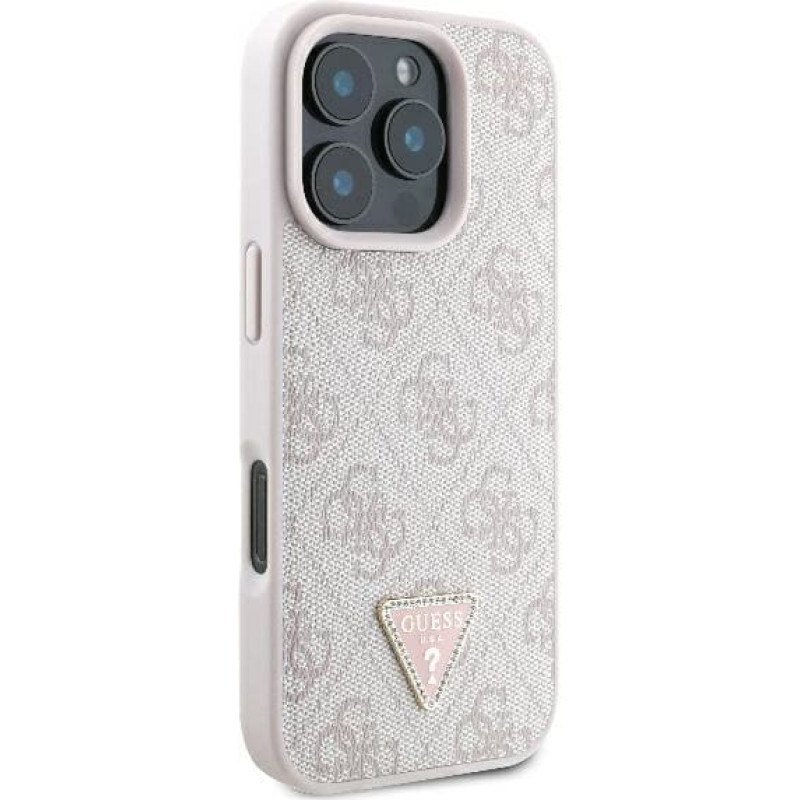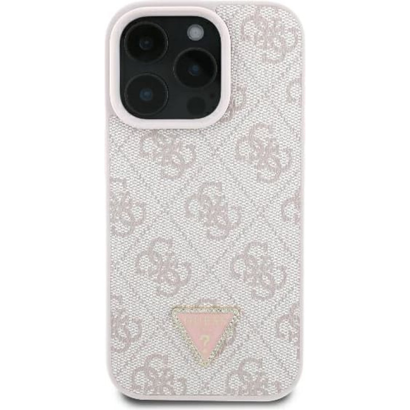 Jūsu iepirkumu grozs ir tukšs! Guess case for iPhone 16 Pro Max 6,9" GUHCP16XP4TDPP Leather 4G Triangle Strass pink MagSafe