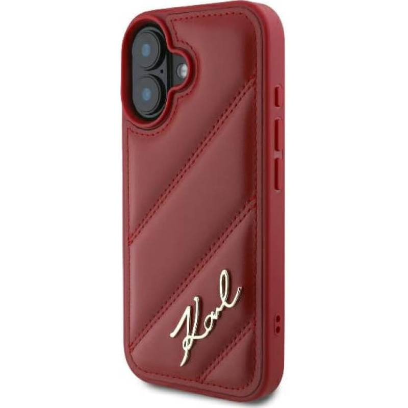 Jūsu iepirkumu grozs ir tukšs! Karl Lagerfeld case for iPhone 16 6,1" KLHCP16SPQDSMGR red Hard Diagonal Quilted Script
