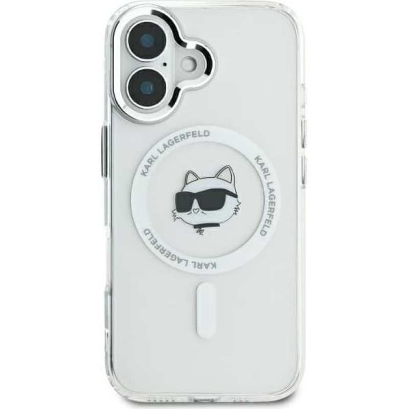Jūsu iepirkumu grozs ir tukšs! Karl Lagerfeld case for iPhone 16 Plus 6,7" KLHMP16MHLSCHH white Hard IML Metal Choupette Head MagSafe