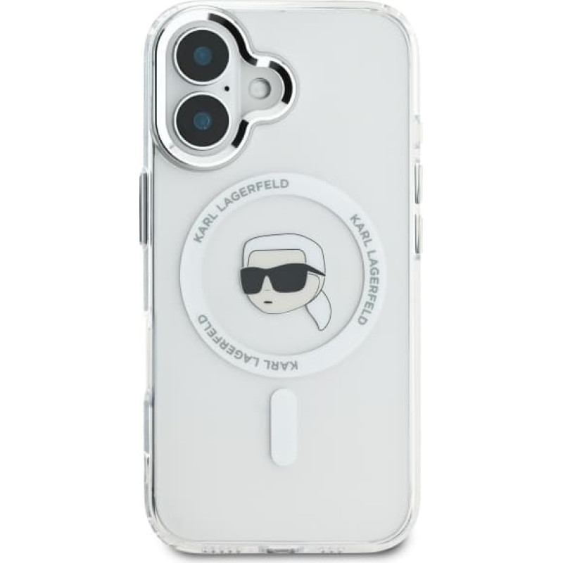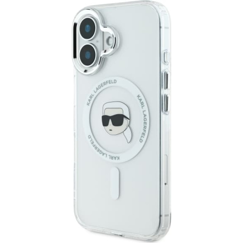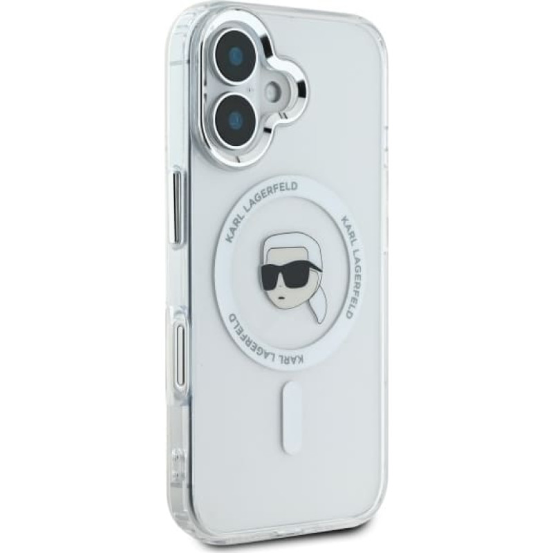 Jūsu iepirkumu grozs ir tukšs! Karl Lagerfeld case for iPhone 16 Plus 6,7" KLHMP16MHLSKIH white Hard IML Metal Karl Head MagSafe