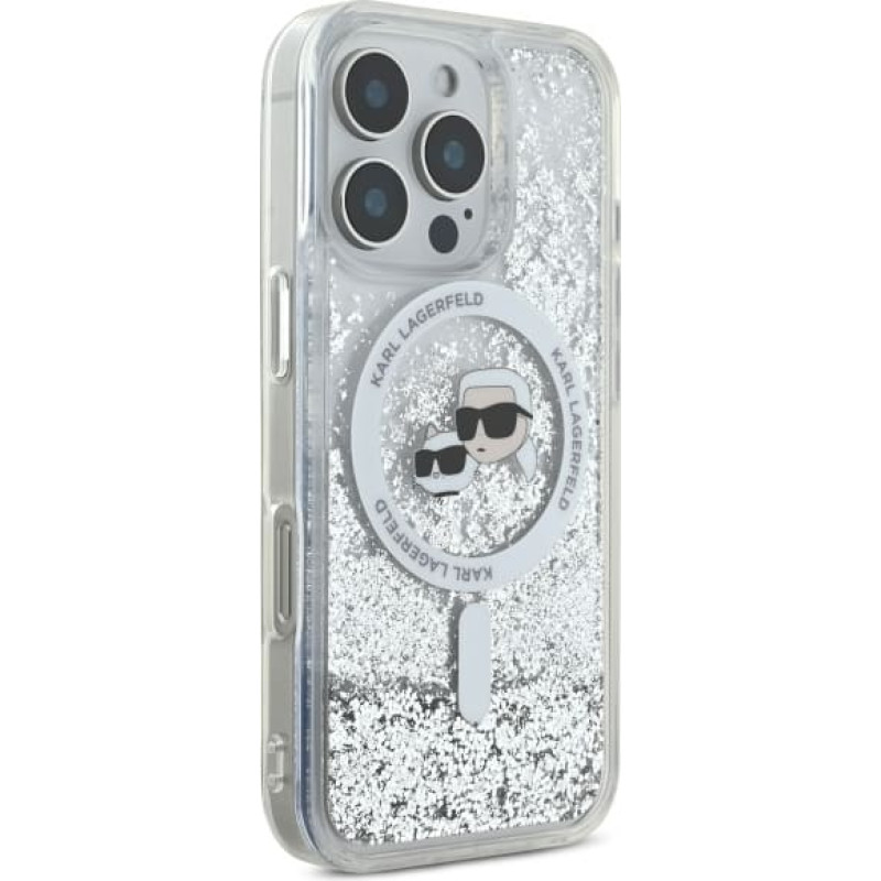 Jūsu iepirkumu grozs ir tukšs! Karl Lagerfeld case for iPhone 16 Pro Max 6,9" KLHMP16XLGKCSGH transparent Hard Liquid Glitter Karl&Choupette Head MagSafe