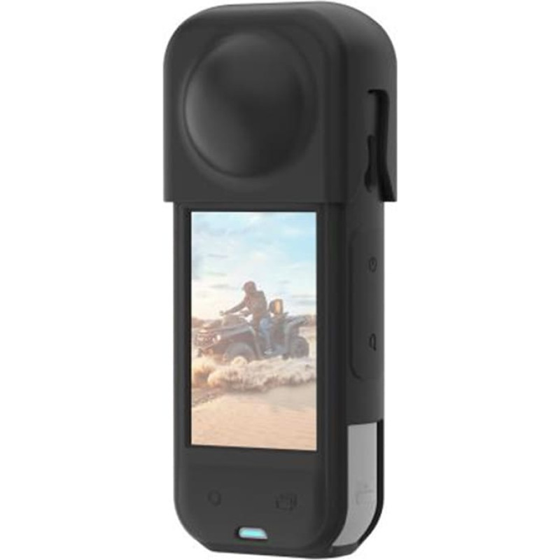 PULUZ silicone protective case with lens cover for Insta360 X5 (black)PULUZ silicone protective case is an indispensable accessory for every Insta360 X5 camera owner. It provides comprehensive protection for your device from mechanical damage, protects the lens with a dedicated cover, while ensuring convenient access to the most important ports and functions. Made of high-quality flexible silicone, the case features shock, scratch and impact resistance. The precision-fit shape, pleasant to the touch surface and easy installation make the use of the camera even more comfortable and safe.