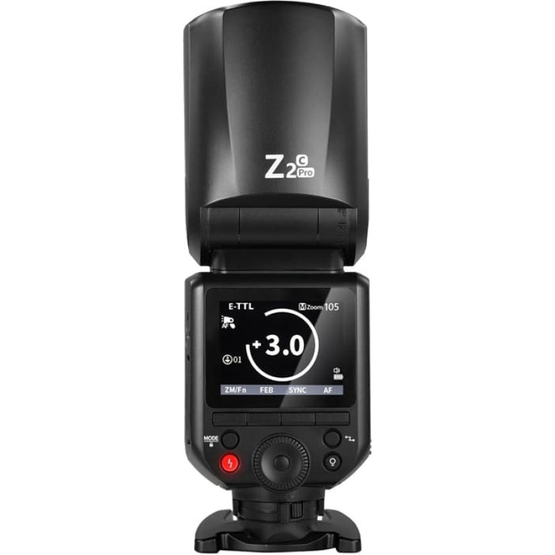 Professional results in any situationThe flash automatically adjusts the zoom from 28-105mm, allowing you to achieve precise lighting effects tailored to your lens focal length. It supports exposure compensation of ±3 EV, first and second curtain sync modes, and strobe flash. Thanks to its High-Speed Sync function with a flash duration of up to 1/8,000 sec, it is also perfect for intense daylight conditions. With flash durations ranging from 1/800 s to 1/20000 s, you can capture even the most dynamic shots.