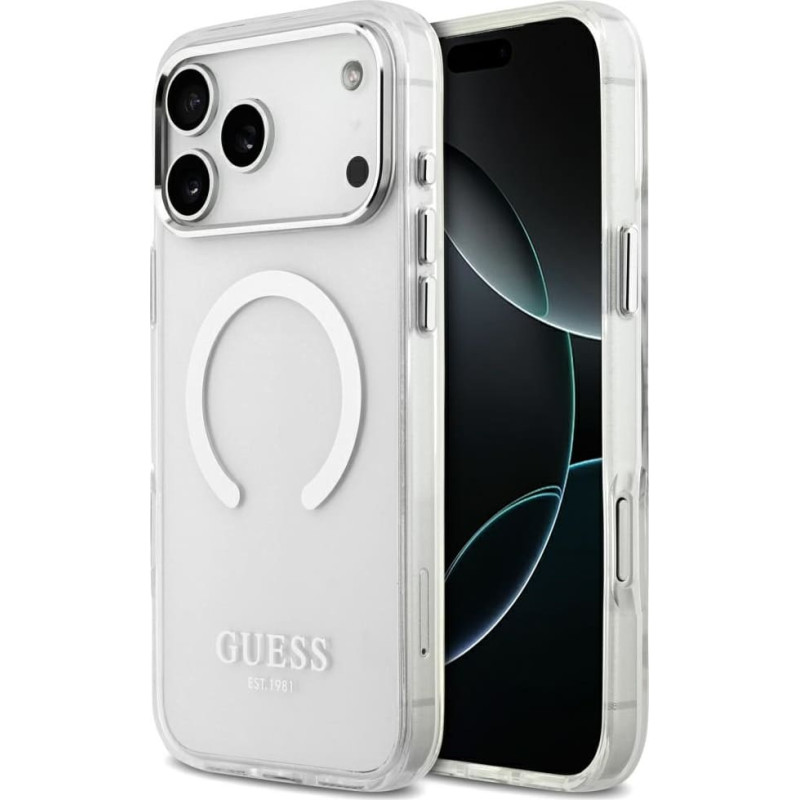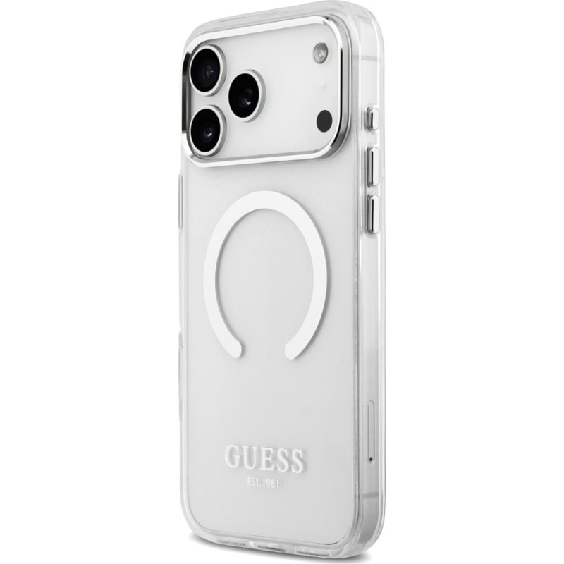 Jūsu iepirkumu grozs ir tukšs! Guess Metal Outline MagSafe case for iPhone 17 Pro Max silver