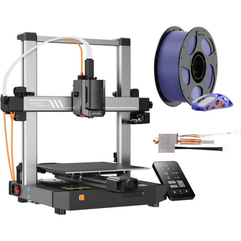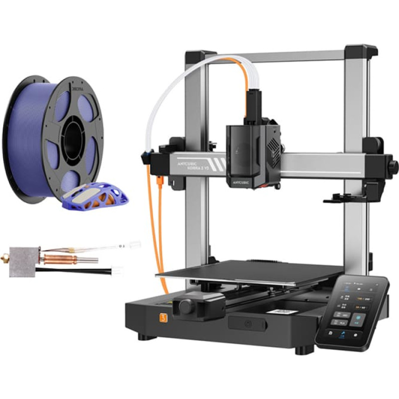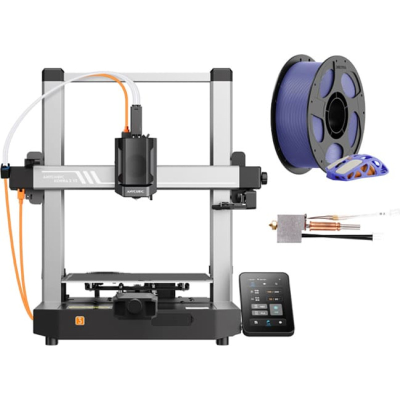 Anycubic Kobra 3 V2 Combo 3D Printer + Hotend + Filament freeMeet the Anycubic Kobra 3 V2 Combo - a 3D printing kit that offers multi-color printing with active drying of the filament to ensure vibrant, defect-free prints. The printer features an enhanced LeviQ 3.0 automatic leveling system with a 60mm Y-axis and SG15 bearings to ensure perfect adhesion and flawless first layers, while speeds of up to 600mm/sec and 20,000mm/s² acceleration reduce turnaround time for even the most demanding projects. Thanks to "plug & play" (an installation that, once connected to the hardware of your choice, requires no additional configuration or driver downloads), installation and initial startup take less than 15 minutes, while smart features such as resuming printing after power loss, filament detection and timelapse on the built-in 720 p camera ensure continuous and safe operation. The whole thing is complemented by the powerful Anycubic ecosystem, which gives you full control over every step of the printing process. It also includes the ACE Pro module, which takes care of proper drying of the filaments and allows 3D printing in multiple colors, a hotend and PLA (Polylactic Acid, a biodegradable thermoplastic 3D printing material) filament in Interstellar Violet.