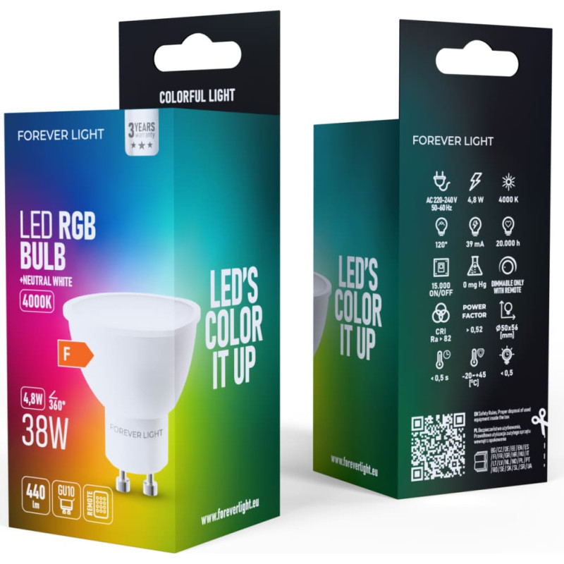 Jūsu iepirkumu grozs ir tukšs! Forever Light LED Bulb RGB GU10 4.8W 440lm 4000K class F