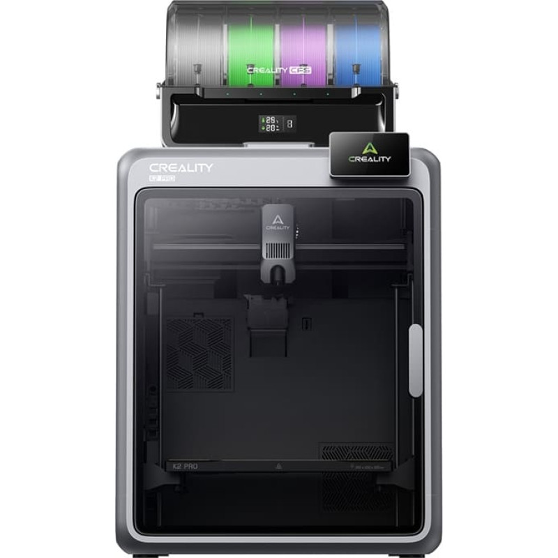 Creality K2 Pro Combo 3D PrinterCreality K2 Pro is a premium 3D printer created for the most demanding users - enthusiasts, engineers or creatives who expect excellent quality, reliability and flexibility. It combines high printing speed (up to 600 mm/s), actively heated chamber, intelligent AI systems and the ability to work with several colors of filament simultaneously (after installing the CFS module). In addition, it offers automatic leveling and a large workspace - as large as 300 × 300 × 300 mm. All this creates a complete professional 3D printing tool. The kit includes not only the 3D printer, but also one CFS module.