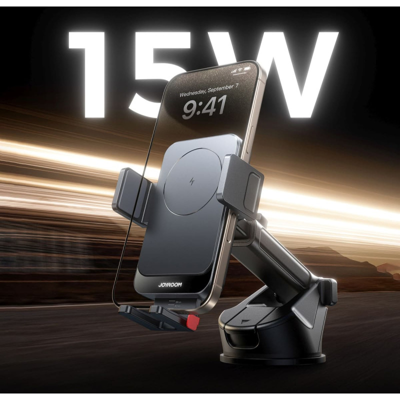 Jūsu iepirkumu grozs ir tukšs! Joyroom Automašīnas tālruņa turētājs ar induktīvo lādētāju instrumentu panelim - melns
