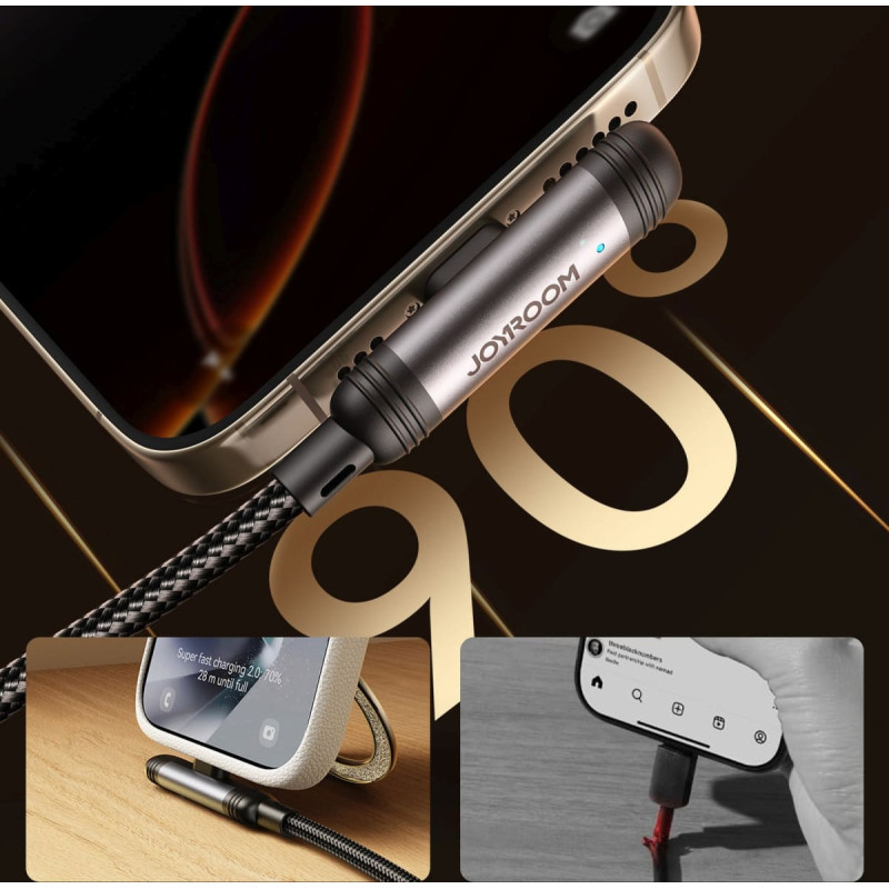Jūsu iepirkumu grozs ir tukšs! Joyroom Leņķiskais USB-A iPhone Lightning 3A kabelis 1,2 m - melns