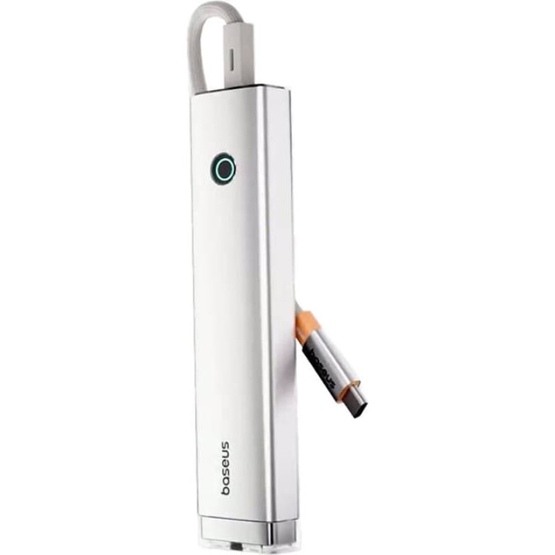Baseus Ultra Joy USB-C 5-in-1 Hub - HDMI, USB3.0x2, PD, RJ45 (Silver)The Baseus Ultra Joy BS-OH165 is a 5-in-1 hub known for its versatility and elegance. Crafted from high-quality 6063 aluminum alloy, this gray hub combines durability with a refined design. Designed to meet diverse user needs, the Baseus Ultra Joy offers the most commonly used ports - from USB3.0 to HDMI, PD, and RJ45 - each tailored to modern data transfer and device charging requirements. Additionally, its compact dimensions (123.5 x 26 x 16mm) and lightweight (62g) make it an ideal companion for travel. Fast Data Transfer: USB3.0The two USB3.0 ports on the Baseus Ultra Joy BS-OH165 provide lightning-fast data transfer speeds of up to 5GB/s. This enables efficient file exchange between various devices without unnecessary time loss. Such performance is particularly useful in situations requiring quick access to large files. High-Quality Display: HDMI 4K@60HzThe HDMI port on the Baseus hub supports 4K quality video transmission at 60Hz, ensuring exceptionally clear and smooth visuals. This allows users to enjoy excellent video quality, especially during presentations, movie viewing, or gaming. Efficient Charging: PD 100W PortThe PD (Power Delivery) port on the hub enables fast charging of devices at speeds up to 100W. This significantly reduces the time required to charge smartphones, tablets, or even laptops, which is invaluable in a dynamic work environment. Fast Internet Connection: RJ45 PortThe RJ45 port on the Baseus Ultra Joy BS-OH165 utilizes the Realtek RTL8153B chip, offering transmission speeds of up to 1000Mbps. This allows users to enjoy a stable and fast internet connection, essential for remote work, downloading large files, or streaming video. Additional Features and SafetyThe Baseus Ultra Joy BS-OH165 also offers a screen casting support indicator through the Type-C port, as well as a convenient button for quickly disabling screen sharing. The hub also provides excellent heat dissipation properties and protection against overload and short-circuit, enhancing safety during use. Package ContentsHub