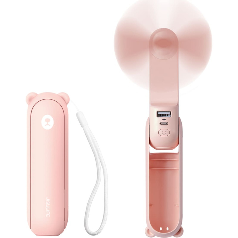 Jūsu iepirkumu grozs ir tukšs! Jisulife Mini portatīvais ventilators ar lādētāja funkciju un lukturīti USB-A USB-C 2000mAh - rozā