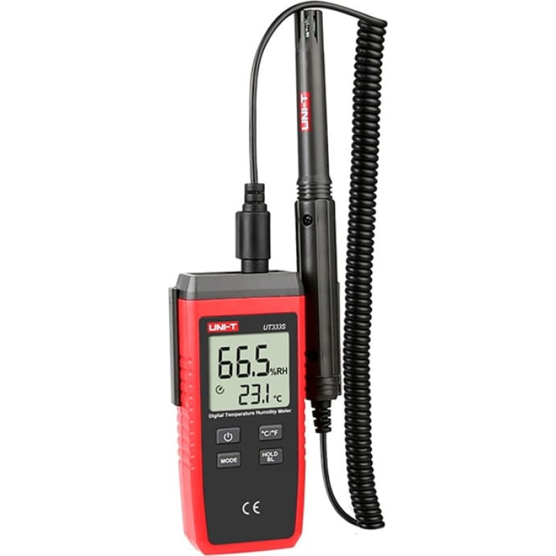 UNI-T UT333S temperature and humidity meterThe UNI-T UT333S features a split-type sensor with a flexible spring-loaded cable, making it ideal for measurements in hard-to-reach places - such as air ducts, equipment interiors or corners of industrial installations. The UT333S is a useful tool both at home and in technical environments, where fast and precise readings of ambient conditions are important.