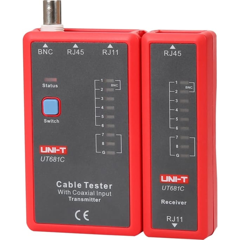 UNI-T UT681C network cable testerUNI-T UT681C cable tester is a handy and reliable tool for checking the condition of Ethernet, telephone and BNC cables. Indispensable in the work of installers, technicians and service technicians, it allows you to instantly detect breaks, short circuits, misconnections or cable crossings. Thanks to its compact design, clear LED indicators and 9V battery power, the UT681C is suitable for both quick tests in the field and thorough network inspections in the office or server room.