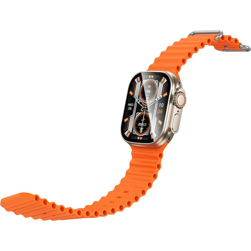 | Borofone Smartwatch BD14 Ultra – titanium gold is a modern smartwatch with a large TFT display, offering advanced monitoring and communication features in a sleek design. Featuring a 2.01-inch TFT screen with 240×296 resolution, it delivers clear visuals and easy navigation. It supports Bluetooth 5.3 with calling capability, tracks sleep, sends call and message reminders, and even includes built-in games. Powered by a 180mAh battery, it lasts up to 5 days on a single charge. The watch supports 22 languages, including English, Polish, Spanish, and German. - Display: 2.01-inch TFT; Resolution: 240×296; Not waterproof