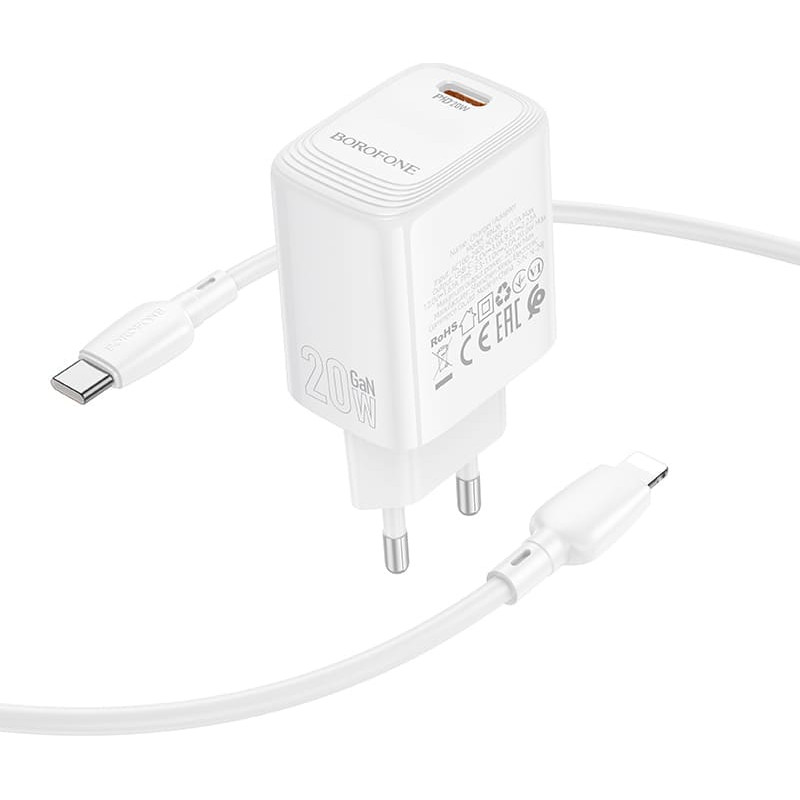 Jūsu iepirkumu grozs ir tukšs! Borofone Wall charger BN26 Fuente - Type C - PD 20W with Type C to Lightning cable white