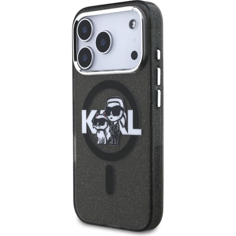 Karl Lagerfeld IML Glitter Karl & Choupette Sketch Logo MagSafe Case for iPhone 17 Pro Black