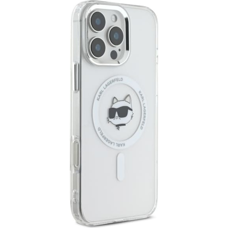 Jūsu iepirkumu grozs ir tukšs! Karl Lagerfeld case for iPhone 16 Pro 6,3" KLHMP16LHLSCHH white Hard IML Metal Choupette Head MagSafe