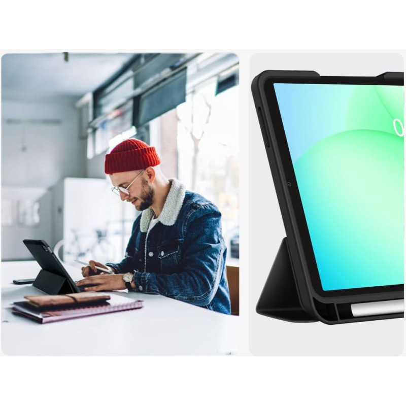 Etui SmartCase Pen od firmy Tech-Protect jest obudową która ochroni twoje urządzenie z każdej ze stron. Lekkie, matowe, acz wytrzymałe silikonowe etui posiada odpowiednio odlane miejsce na przyciski i wycięcia na porty i kamerę. Dzięki zastosowaniu harmonijkowej osłony na przedniej stronie pokrowca, zyskujemy ochronę wyświetlacza, a dzięki technologii wybudzania i usypiania urządzenia, możemy zapewnić nieco dłuższą żywotność jego baterii. Case może służyć również za podstawkę do wygodniejszego korzystania z urządzenia. Etui posiada dedykowany schowek na rysik. CECHY PRODUKTU: ZESTAW ZAWIERA: